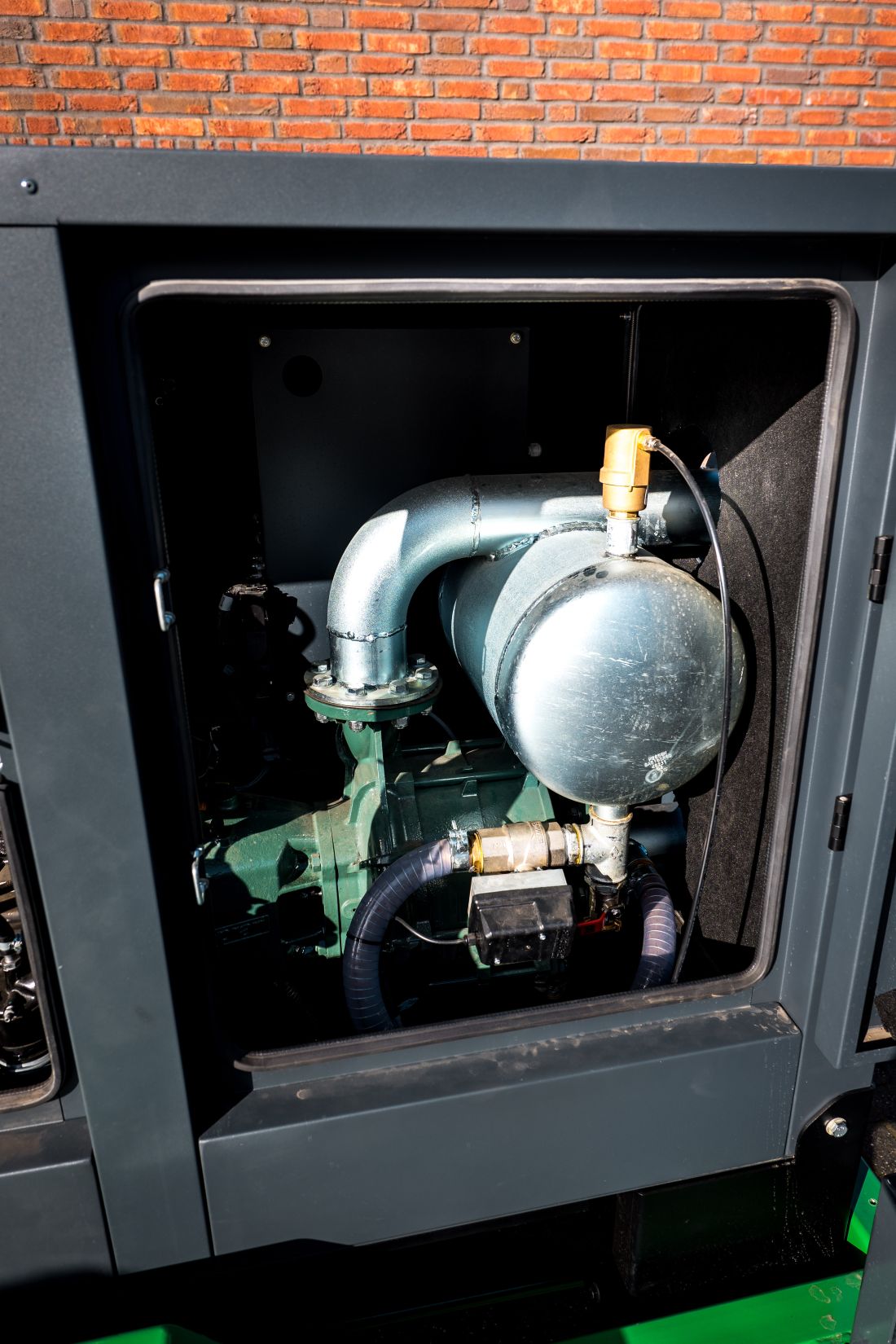 - 2,000-liter fuel tank, cylindrical with lockable cabinet